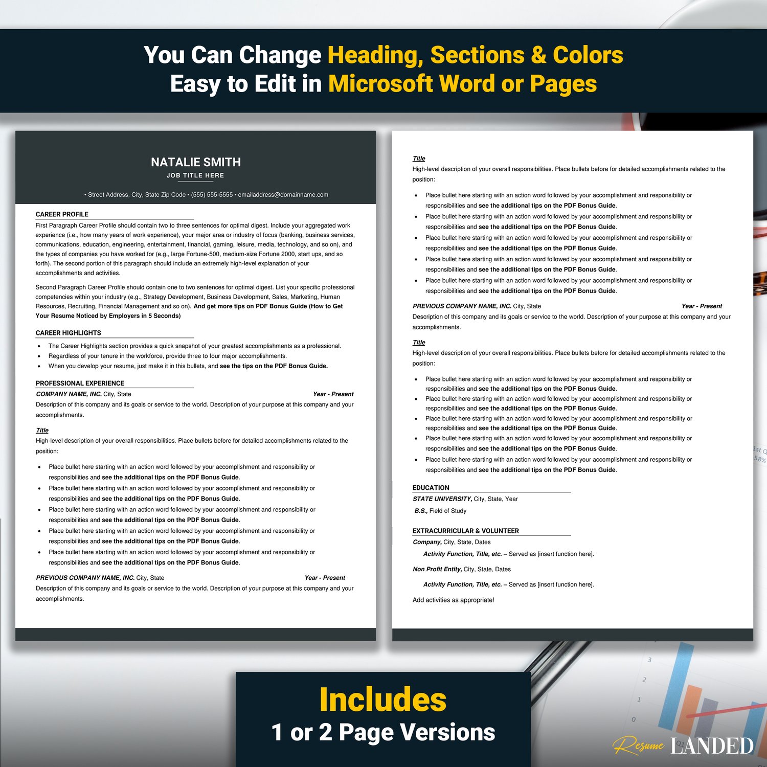 • 1 & 2 Page Resume Templates
