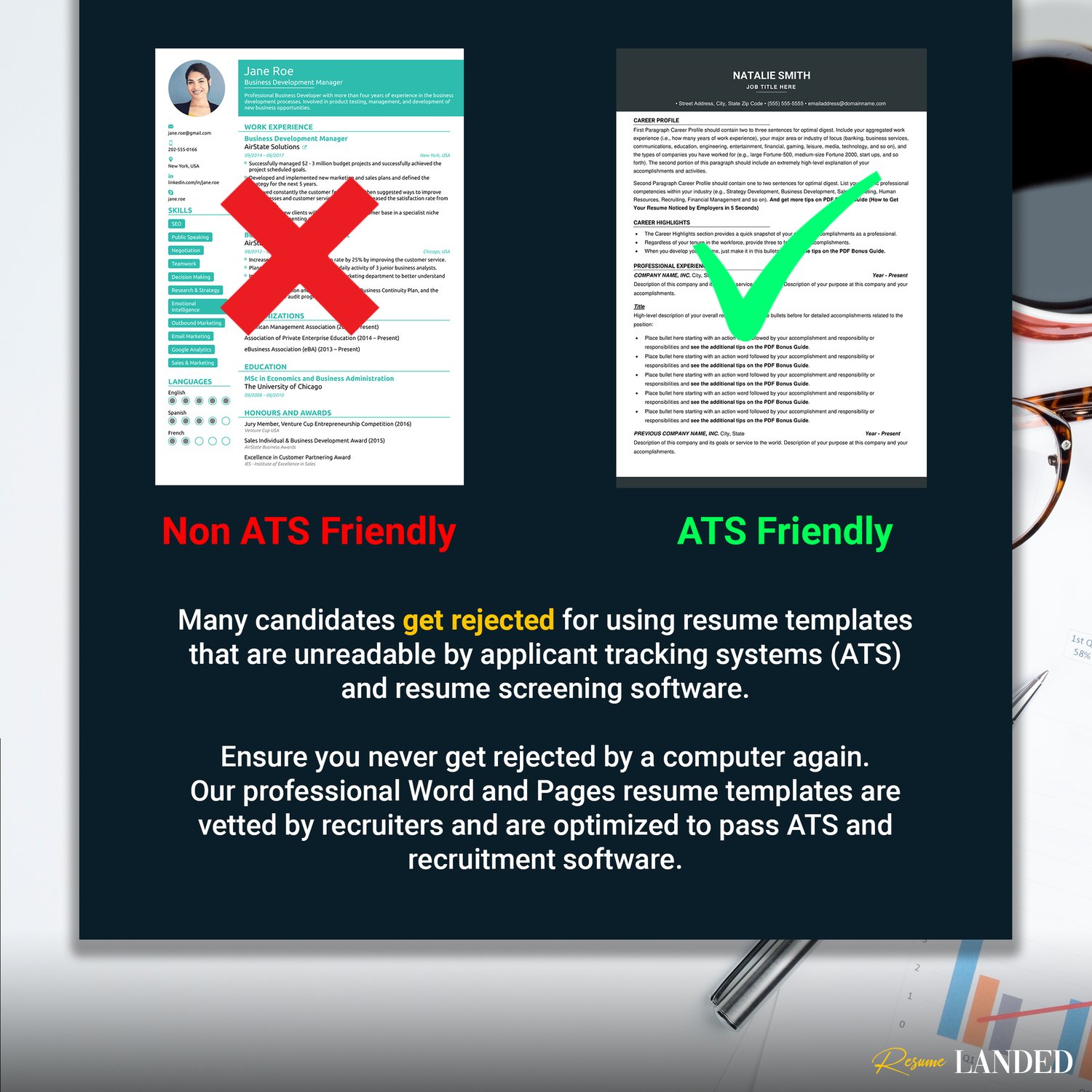 Each resume comes with a FREE 50 page PDF packed with the crucial advice you need to stand out in 2021.