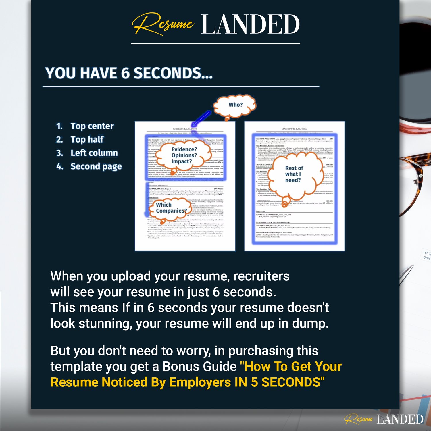 When a recruiter looks at your resume for just 6 seconds before deciding YES or NO, your resume’s design matters.