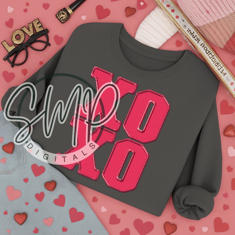 Dark Pink XOXO Faux Embroidery & Seersucker Digital