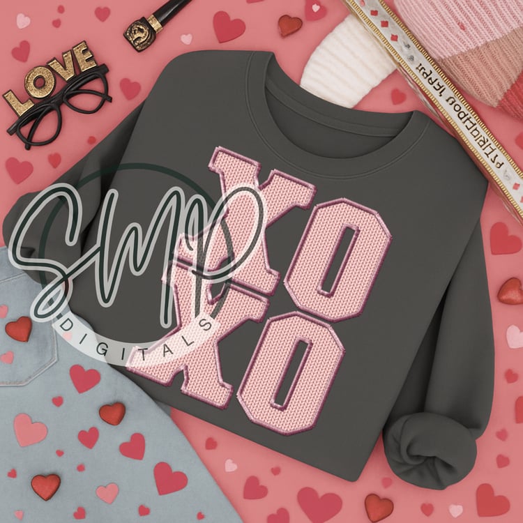 Light Pink XOXO Faux Embroidery & Seersucker Digital