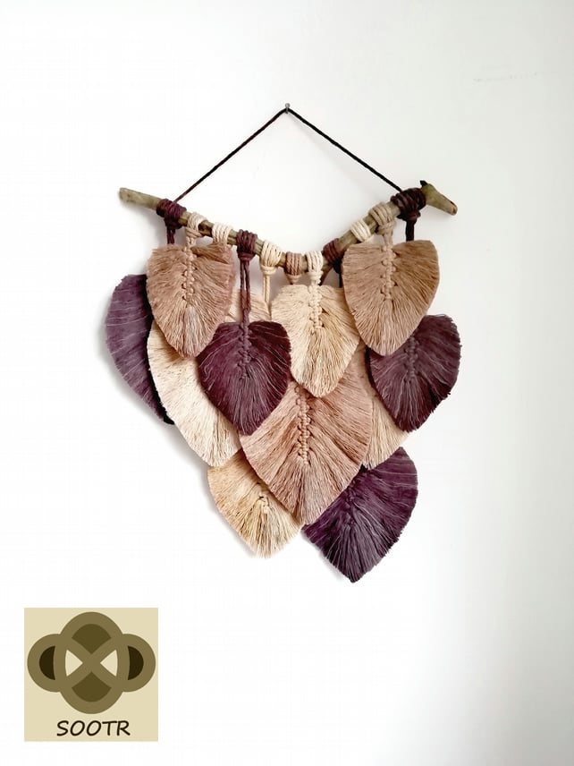 BROWN & BEIGE FEATHERS HANG WALL WITH NATURAL BRANCH