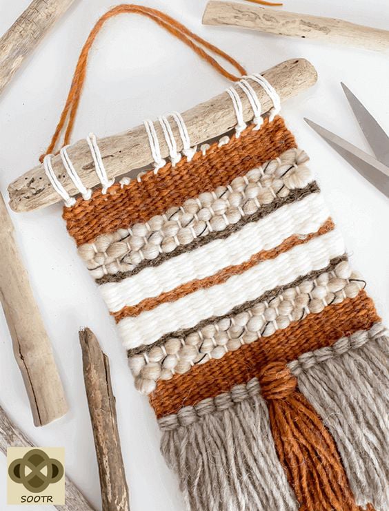 TAPESTRY HANG WALL GOLD & BEIGE WITH NATURAL BRANCH