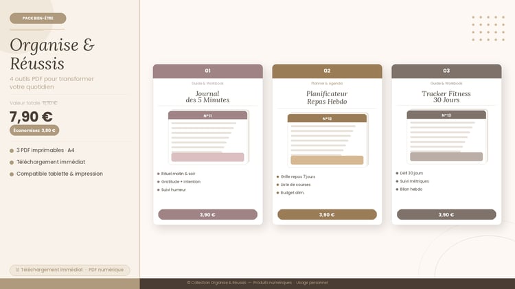 Scimagination Creative, c'est une collection de planners, journaux et templates digitaux pensés pour les créatives et solopreneurs qui jonglent avec mille projets à la fois. Ici, pas de systèmes compliqués — juste des outils minimalistes et élégants pour t'aider à prioriser, créer et avancer avec intention.