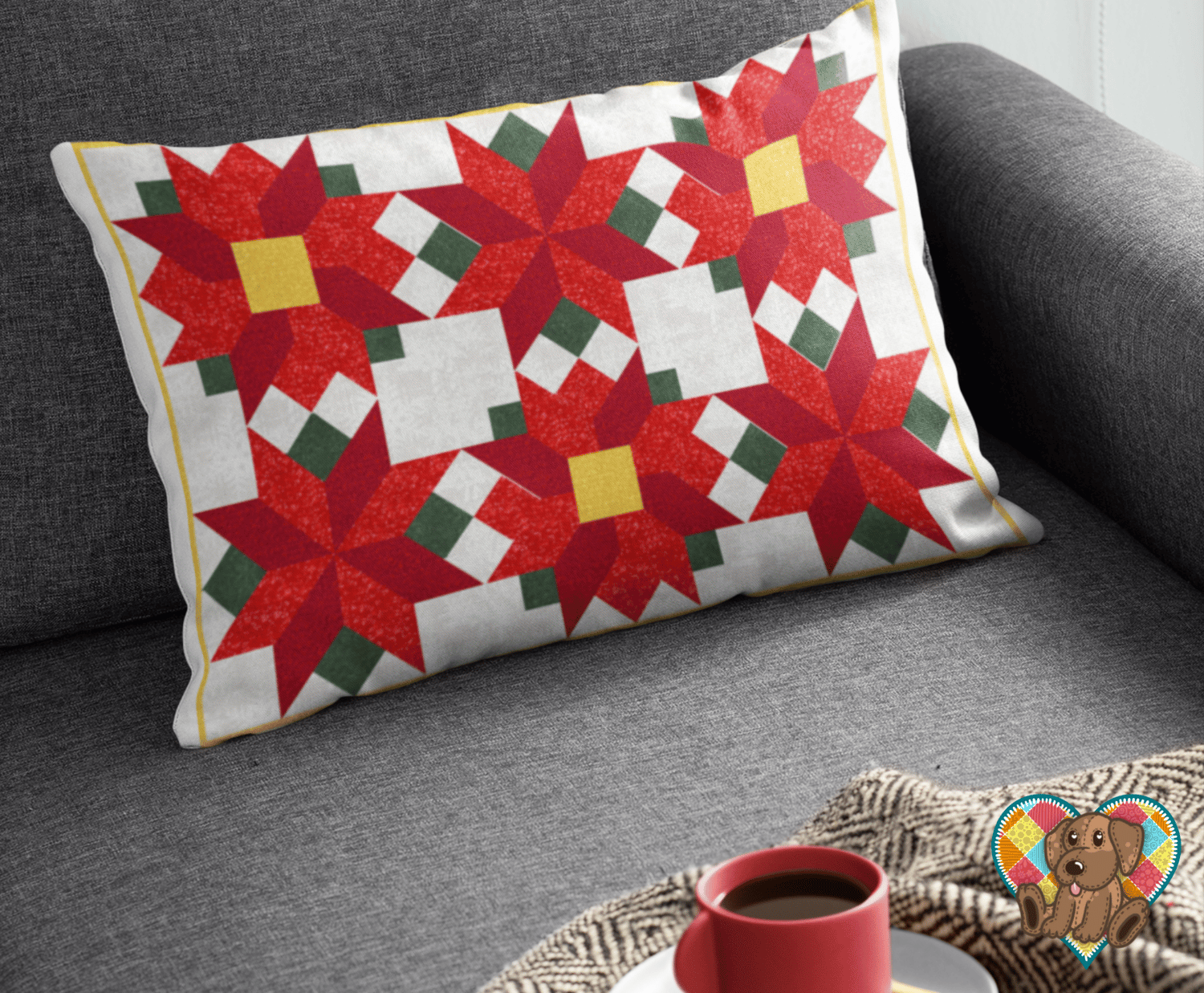 Poinsettia Pillow Sham Quilt Front Pattern