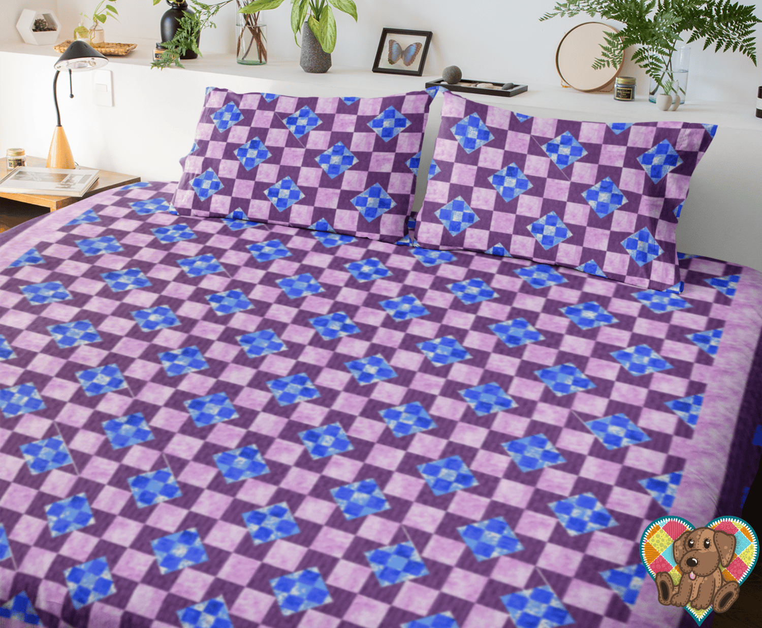 7 Patch Two Pillow Sham Quilt Front Pattern