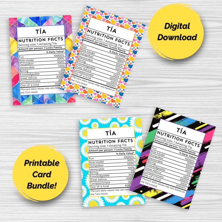 Printable Tía Greeting Card Bundle (4 Card Designs)