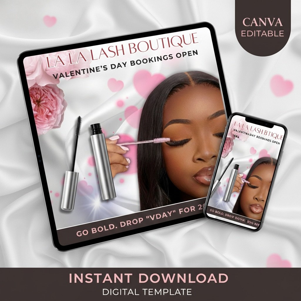Valentine’s Day Lash Booking Template | Digital Download (Canva Editable)