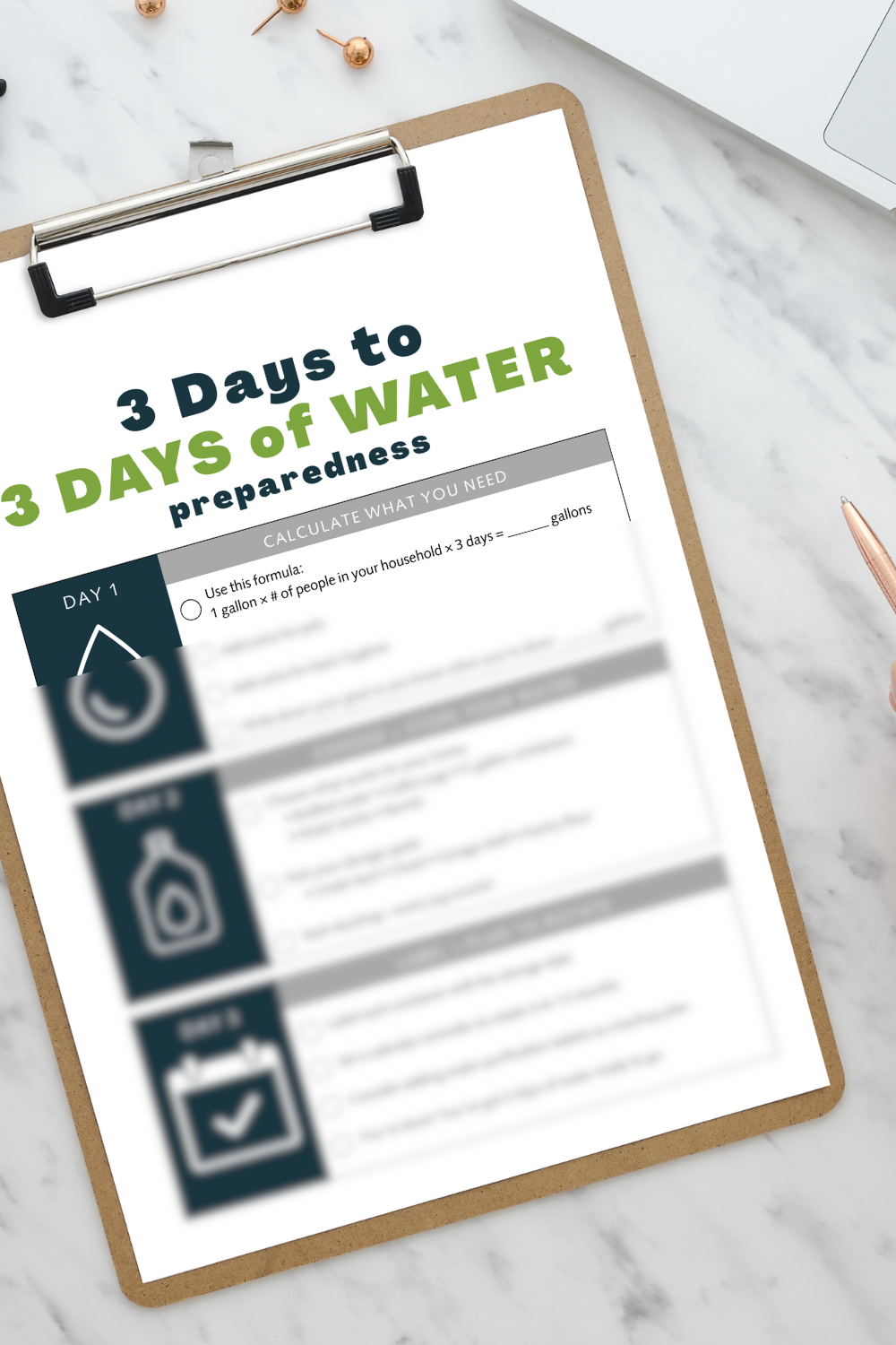 The key is balance: some water ready to drink immediately, a container for carrying more, and a way to make any water source safe. If you’re ready to put this into action, grab my 3 Days to 3 Days of Water Preparedness Planner. This printable gives you a step-by-step framework to organize your family’s water supply with confidence. Start today, and you’ll know you’re ready for the unexpected—without the stress of figuring it out alone.