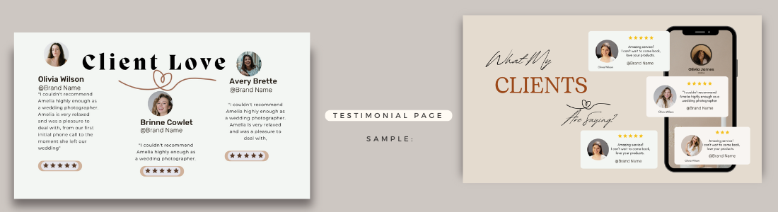 The Testimonial page is a powerful tool for building credibility and trust with potential clients. Social proof whether in the form of feedback from brands you've worked with, influencers you've collaborated with, or even clients you've completed projects for offers potential brands tangible evidence of your professionalism, reliability, and creative abilities.