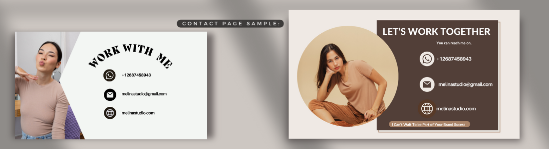 Your Contact Me page is where you invite potential clients and brands to reach out and collaborate with you. It’s the gateway to building professional relationships, so keep it simple, inviting, and professional. Here’s what to include: