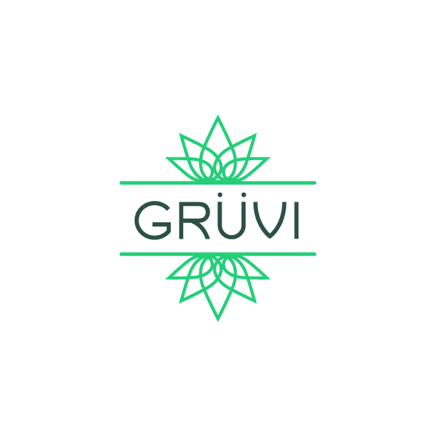 The logo was initially designed to reflect certain aspects of the brand described by the client, however, their target market changed over time; the logo designed remained relevant and was kept; the logo was initially designed to symbolize a leaf, but the idea of balance is also part of the design; this is what relates to Gruvi's audience -- the idea of yoga also comes through. Gruvi is a non-alcoholic beverage and was one of the first in North America to gain success.