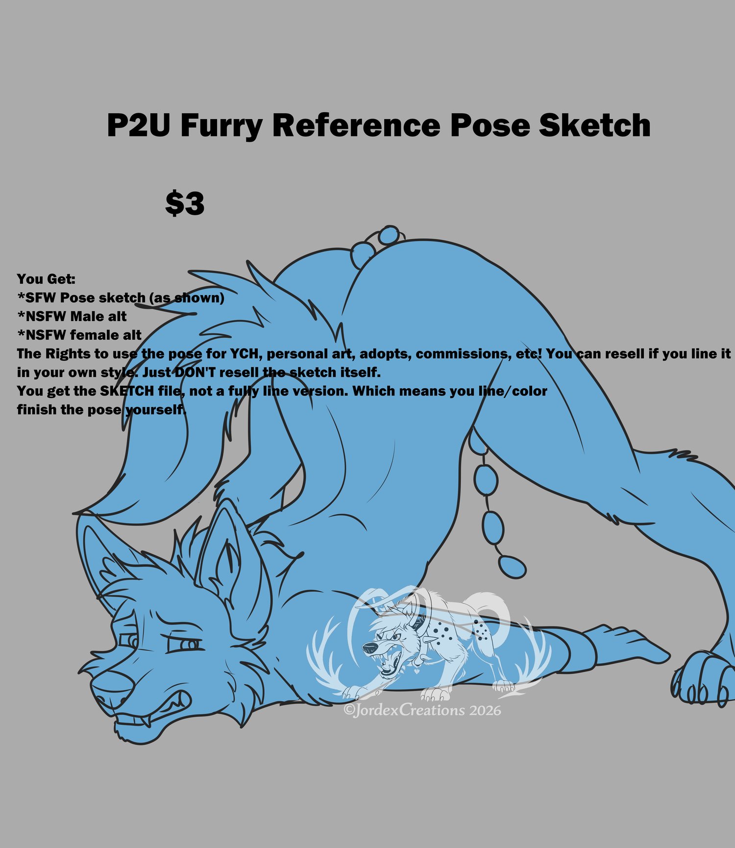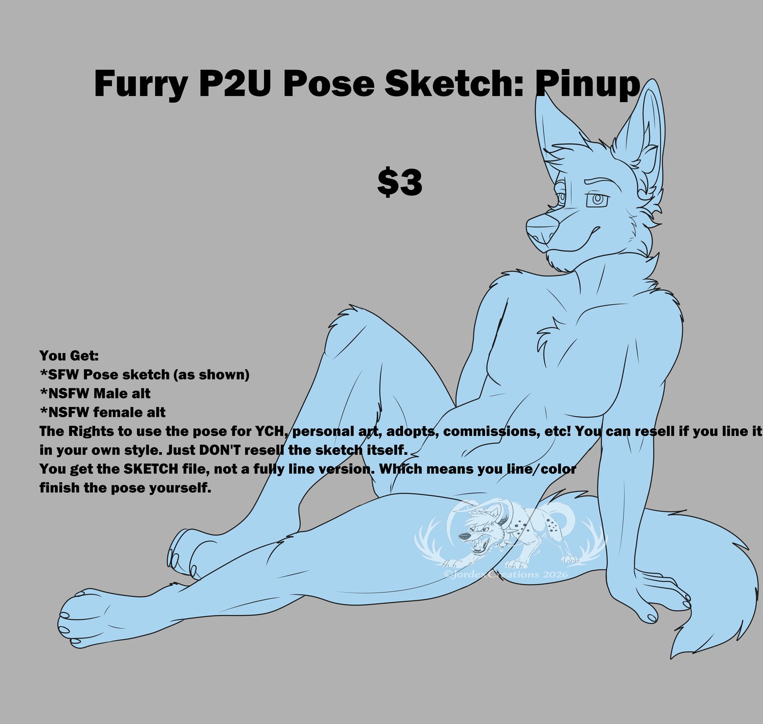 POSE REFERENCE SKETCH: P2U Furry pinup pose #5
