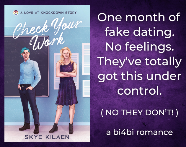 Skye Kilaen is a bi author who writes contemporary & science fiction romance that is sometimes polyamorous, focusing on sapphic stories, queer M+F, and bi and pan main characters. She currently lives in Austin, Texas because it has so many libraries and breakfast tacos.