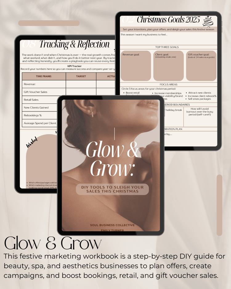Hi, I’m Emily — a nationally accredited dermal therapist, skin clinic owner, and the founder of Soul Business Collective. After building my own clinic from the ground up (and becoming fully booked within the first year), I’m now passionate about helping other women in the beauty and skin industry do the same. My resources are designed to give you clarity, confidence, and practical tools to grow a profitable, soul-led business — without the overwhelm.