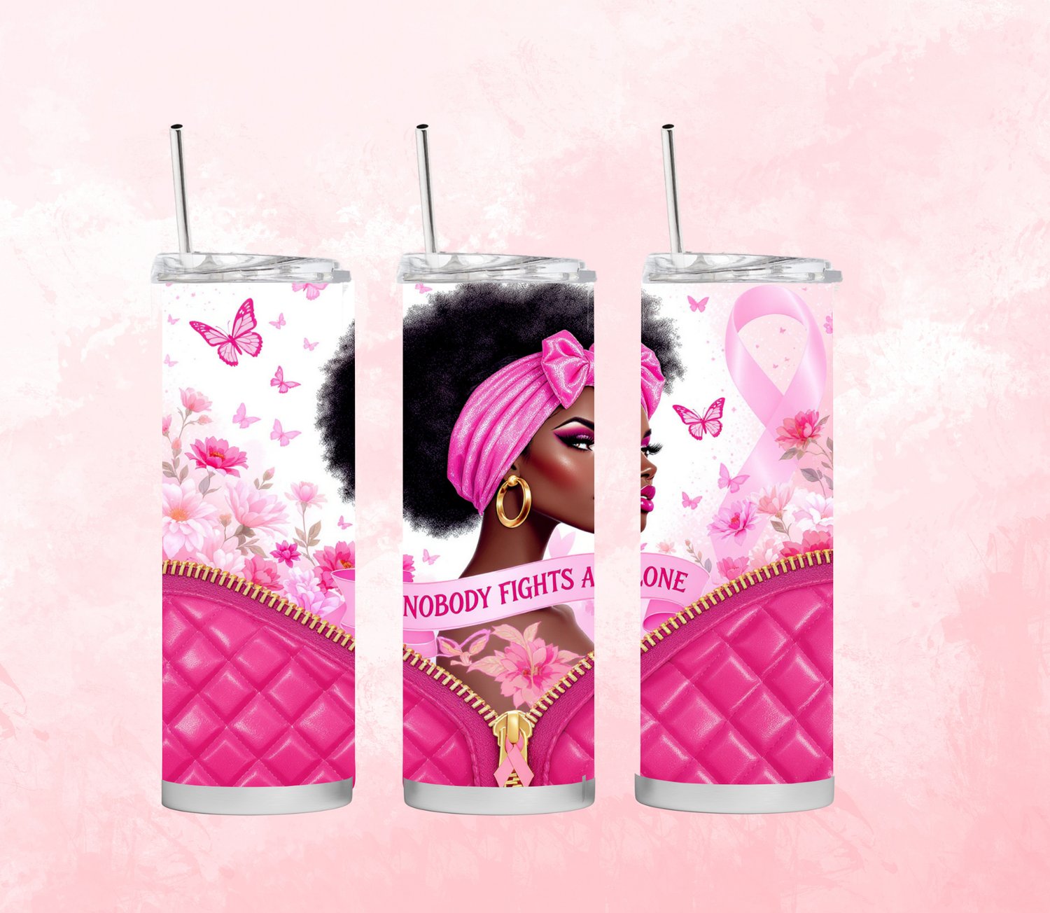Nobody Fights Alone | Breast Cancer Awareness PNG | Afro Glam Warrior Design