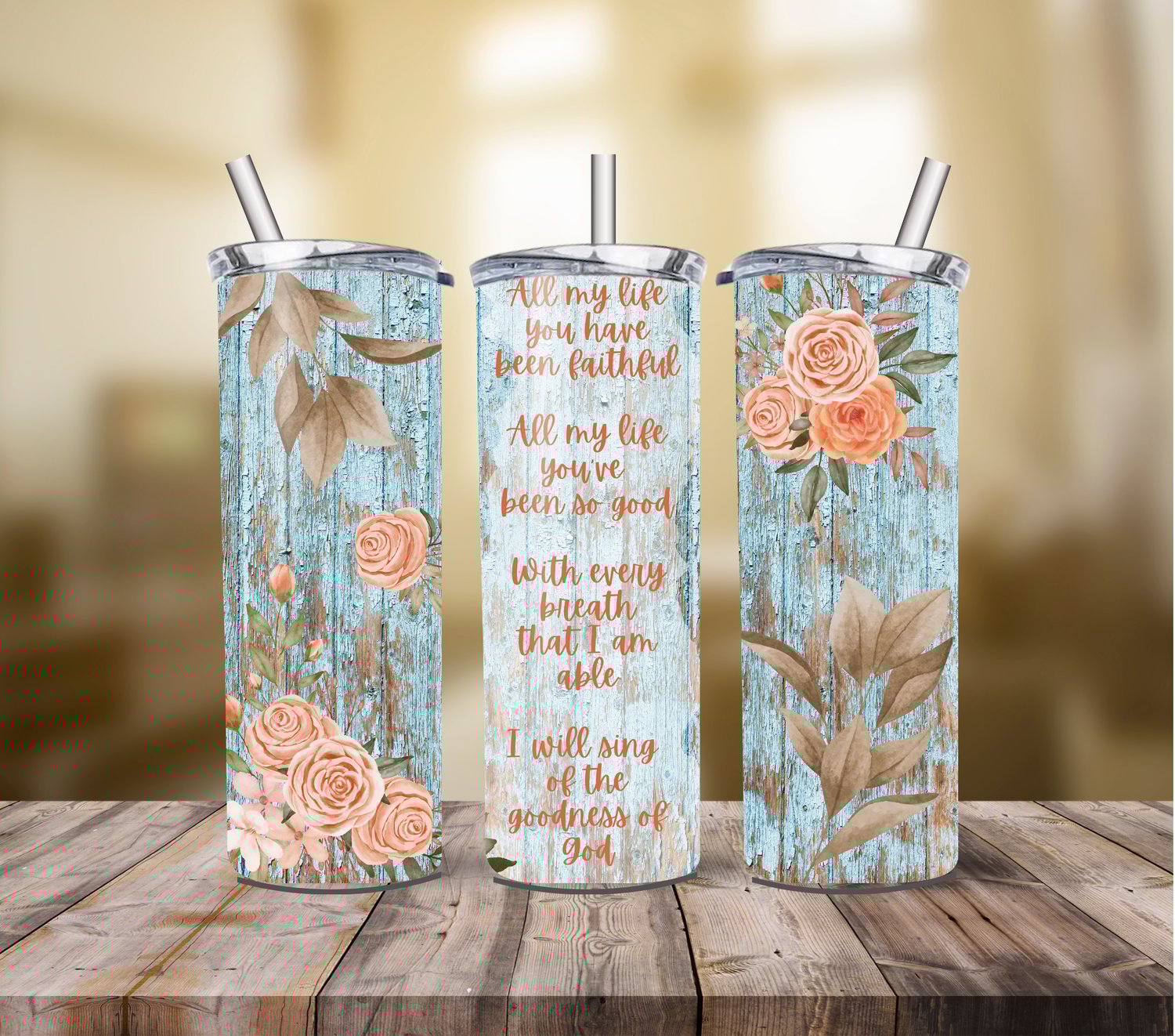 Blessed Not Stressed Inspirational 20 oz Skinny Tumbler