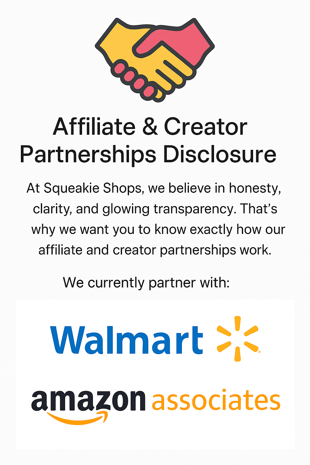 At Squeakie Shops, we believe in honesty, clarity, and glowing transparency. That’s why we want you to know exactly how our affiliate and creator partnerships work.