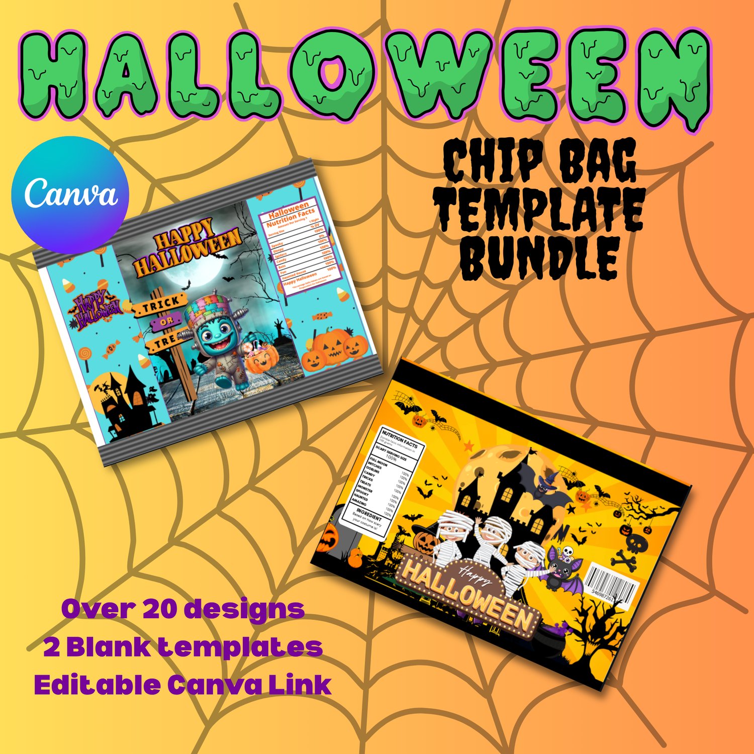 Halloween Chip Bag Template Bundle (Editable in Canva)