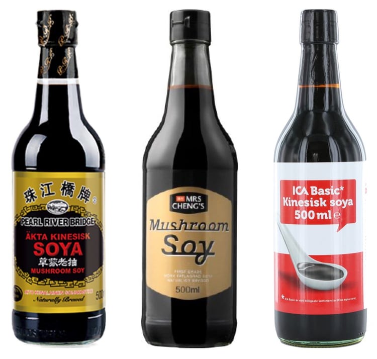 - Mörk soja â tjockare, lite söt, ger fĂ€rg