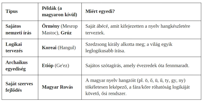 - Ritkaság: Azon népek száma, akik a népvándorlás korából és az ókorból ilyen magas szintű, absztrakt és logikus írásműveltséget hoztak magukkal, kevesebb mint 10-15.