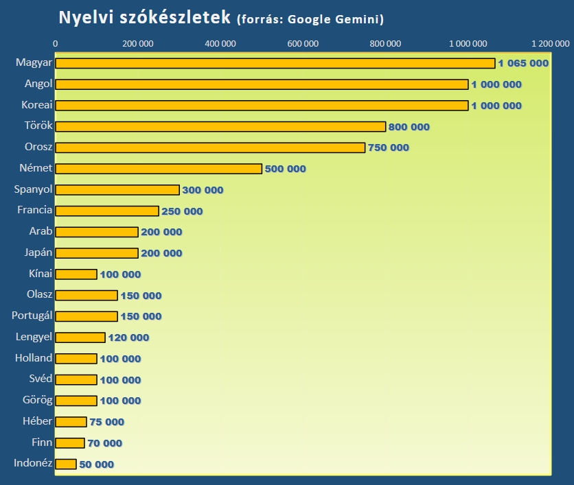 A teljes magyar szókészlet (beleértve a tájnyelvi, régies, toldalékolt, összetett szavakat): több, mint 1 millió szó!
