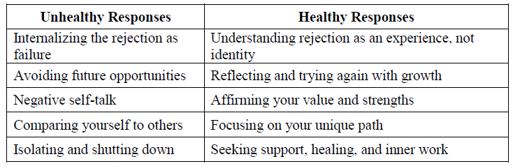 - Healthy ways to respond to rejection instead of shutting down