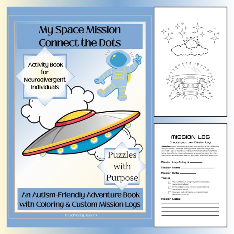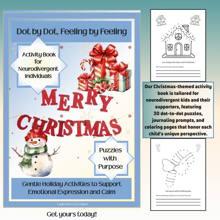 At TaylorBerry Designs, we create sensory-friendly activity books, dot-to-dot puzzles, and emotional journals that support autistic children, teens, and adults in exploring their feelings, building confidence, and finding joy in quiet moments. Whether you're navigating transitions, celebrating tiny triumphs, or simply seeking a gentle way to connect, our resources offer structure, softness, and emotional safety.