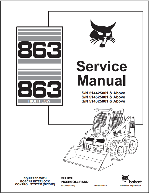 1998 Bobcat 863 And 863H Service Manual Part No. 6900648 (10-98)