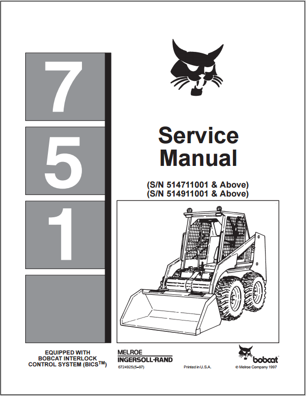 1997 Bobcat 751 Skid Steer Service Manual Part No. 6724925 (5–97)