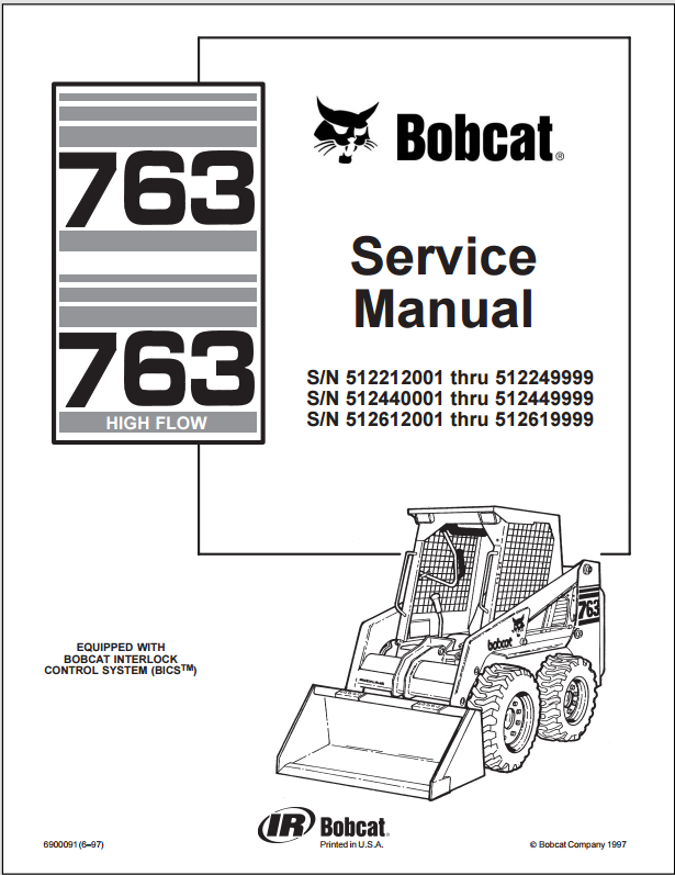 1997 Bobcat 763 Skid Steer Loader Service Manual Part No. 6900091 (6–97)