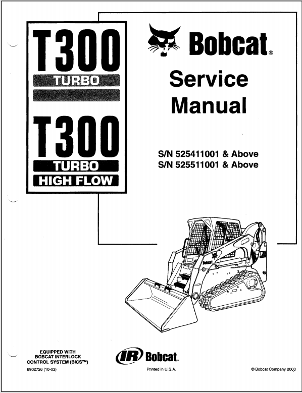 2003 Bobcat T300 Turbo T300 Turbo High Flow Compact Track Loader Service Manual Part No. 6902726 (10-03)