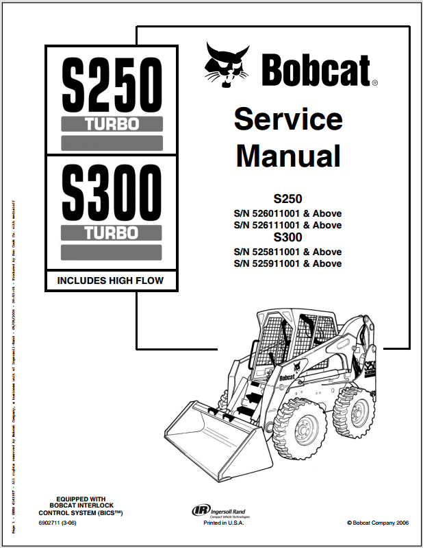2006 Bobcat S250 Turbo S300 Turbo Includes High Flow Service Manual Part No. 6902711 (3-06)
