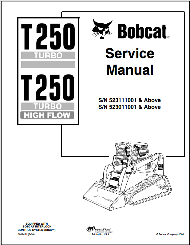 2006 Bobcat T250 Turbo T250 Turbo High Flow Compact Track Loader Part No. 6902451 (3-06)