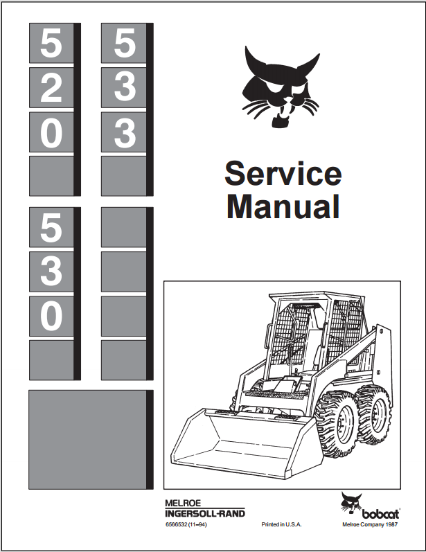1994 Bobcat 520 530 533 Skid Steer Loader Service Manual Part No. 6566532 (11–94)