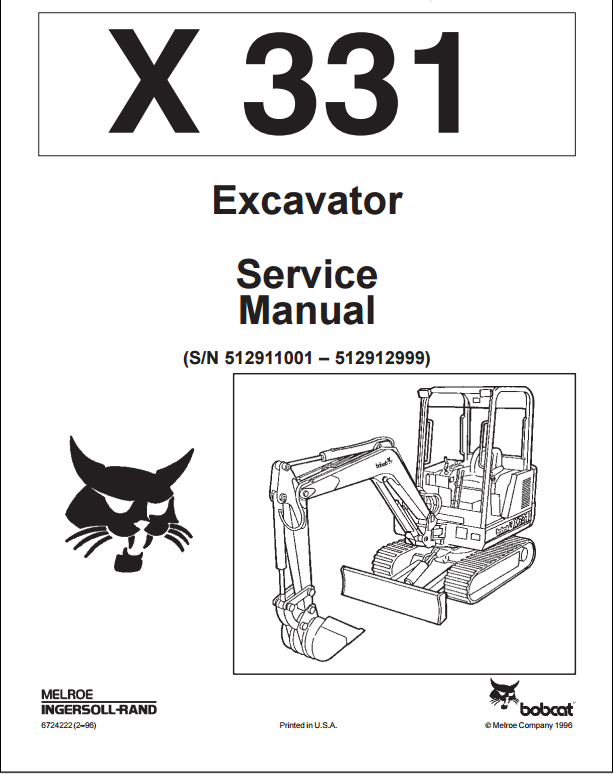 1996 Bobcat X331 Excavator Service Manual Part No. 6724222 (2–96)