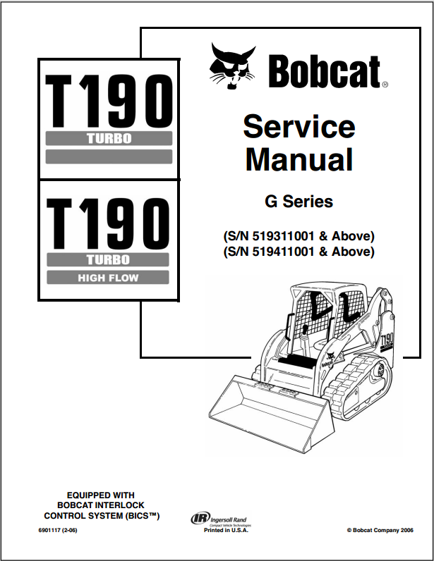 2006 Bobcat T190 Turbo Highflow G Series Track Loader Part No. 6901117 (2-06)