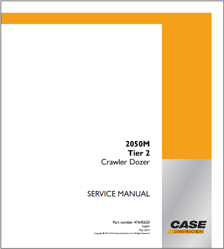 2014 Case Construction 2050M Tier 2 Crawler Dozer Service Manual Part No. 47645620