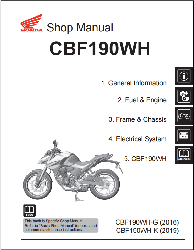 2016 2017 2018 2019 Honda CBF190WH Motorcycle Service Manual