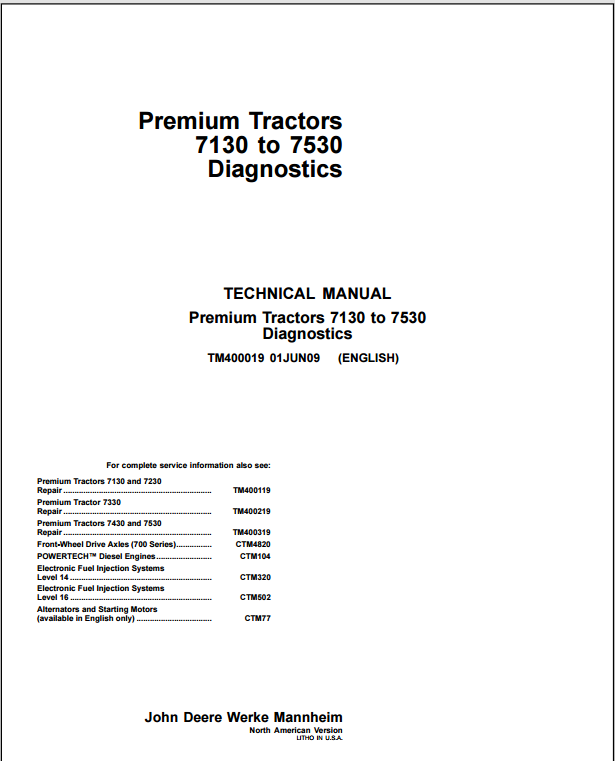 2009 John Deere 7130 7530 Tractors Diagnostics Manual (TM400019 July 01 2009)
