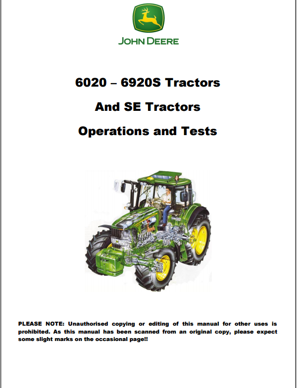 2002 John Deere 6020 to 6920S And SE Tractors Operation And Tests Technical Manual TM4741