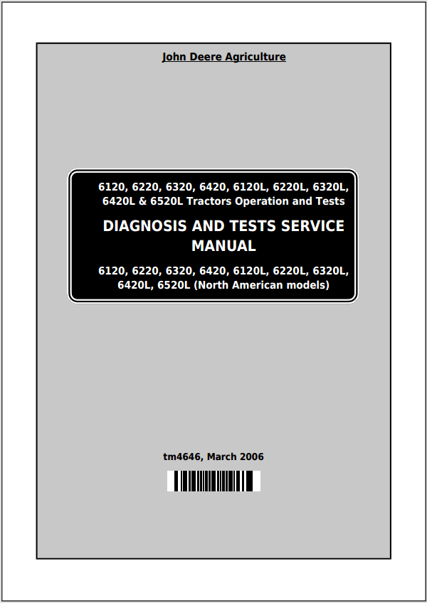 2006 John Deere Agriculture 6120-6220-6320-6420-6120L-6220L-6320L-6420L-6520L Diagnosis And Tests Service Manual TM4646