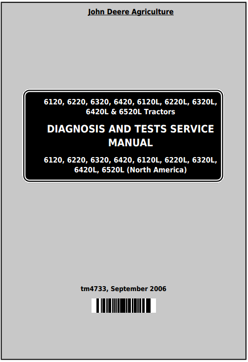 2006 John Deere 6120-6220-6320-6420-6120L-6320L-6420L-6520L Tractors Diagnosis And Tests Service Manual TM4733