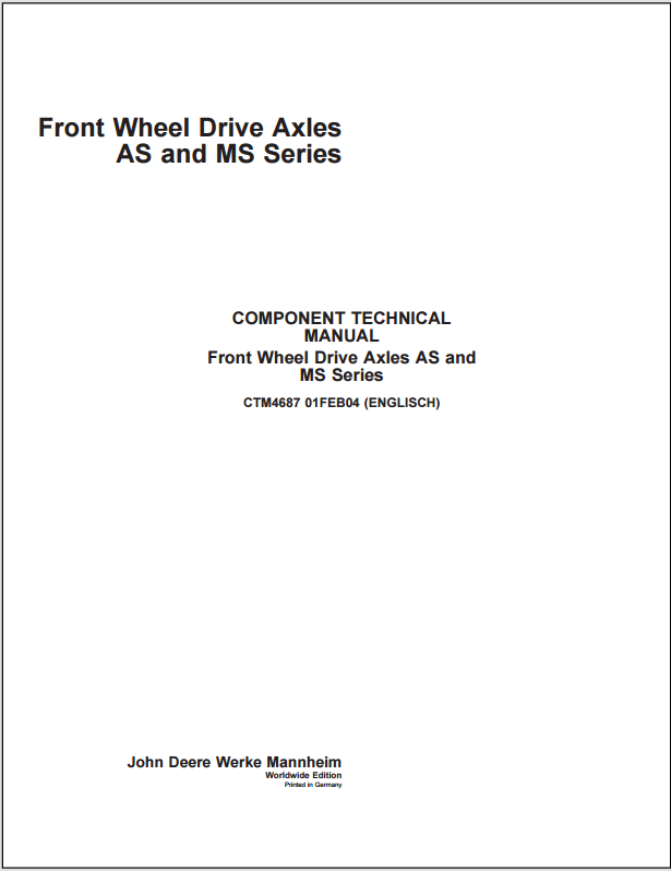 2004 John Deere Front Wheel Drive Axles AS And MS Series Component Technical Manual Part No. CTM4687