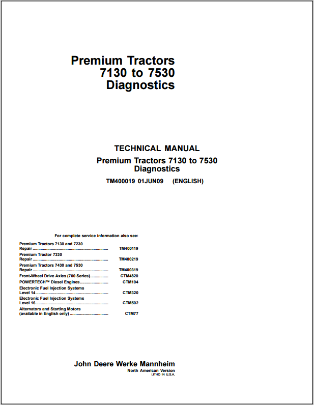 2009 John Deere 7130 - 7530 Diagnostics Technical Manual Part No. TM400019