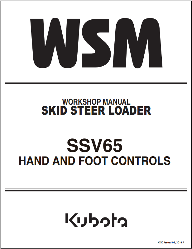 2015 - Kubota - SSV65 Skid Steer Loader - Hand And Foot Controls Workshop Manual