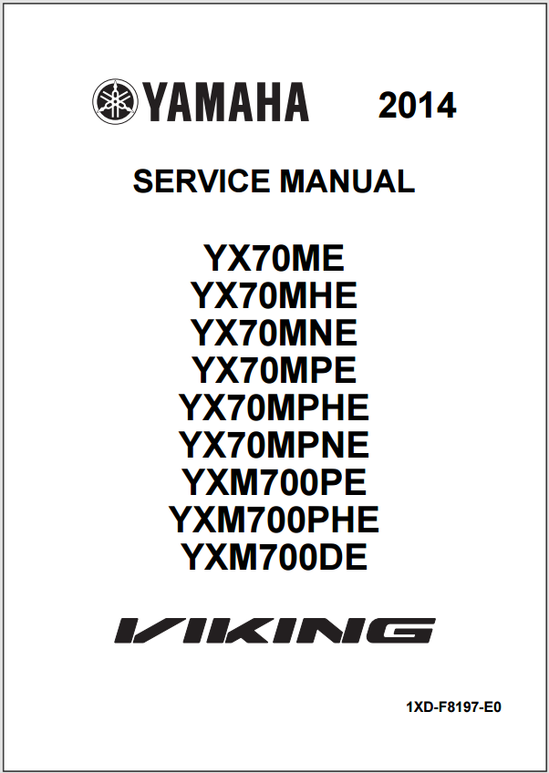 2013 Yamaha YX70ME-YX70MHE-YX70MNE-YX70MPE-YX70MPHE-YX70MPNE-YXM700PE-YXM700PHE-YXM700DE Viking Service Manual Part No. 1XD-F8197-E0