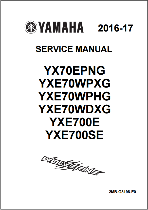 2016-2017 Yamaha YX70EPNG-YXE70WPXG-YXE70WPHG-YXE70WDXG-YXE700E-YXE700SE Wolverine Service Manual Part No. 2MB-G8198-E0