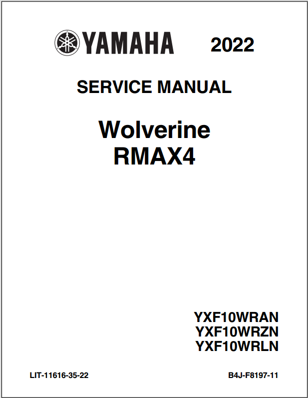 2022 Yamaha Wolverine RMAX4 YXF10WRAN YXF10WRZN YXF10WRLN Service Manual Part No. LIT-11616-35-22