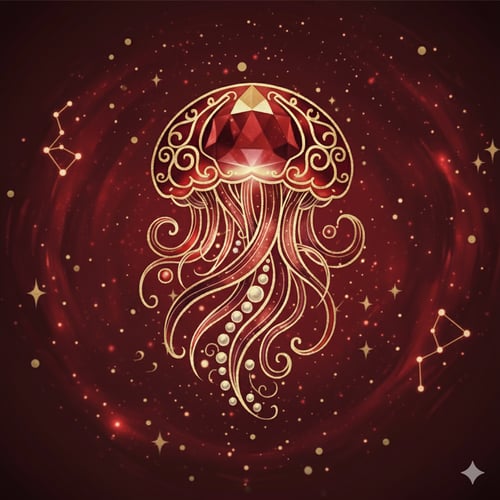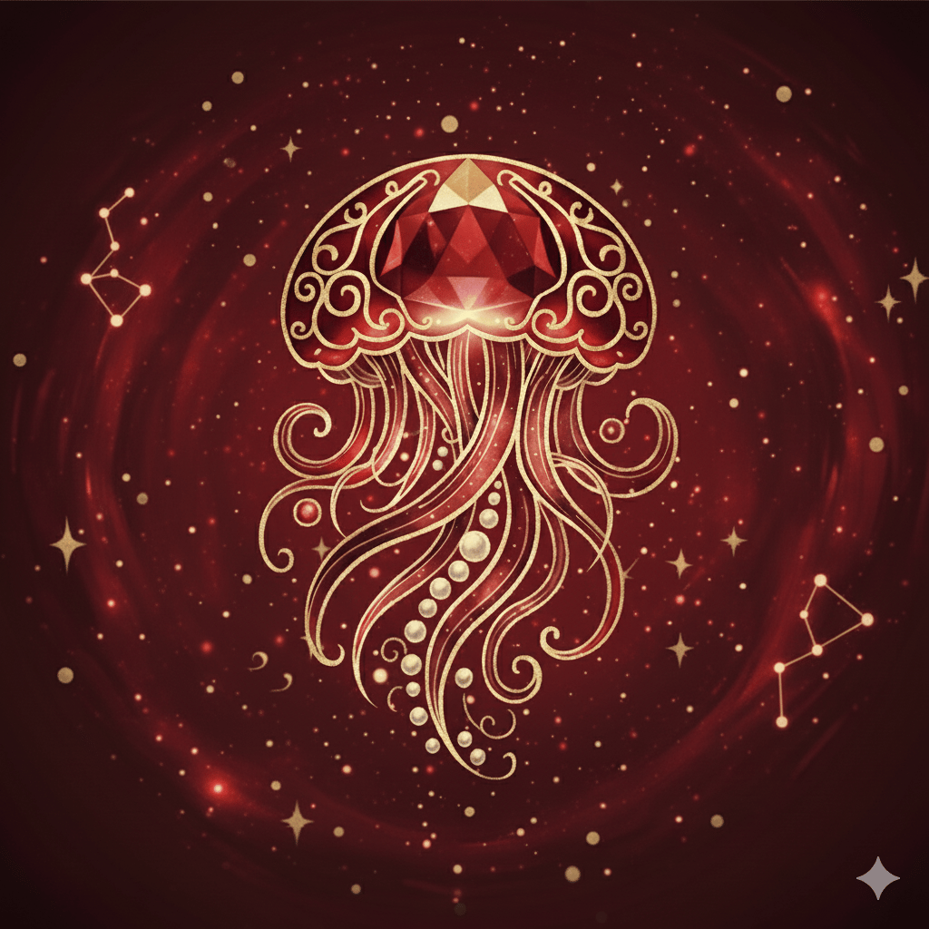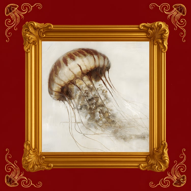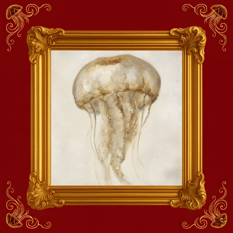 La méduse, créature antique, flotte dans l’infini comme nous flottons dans nos pensées.